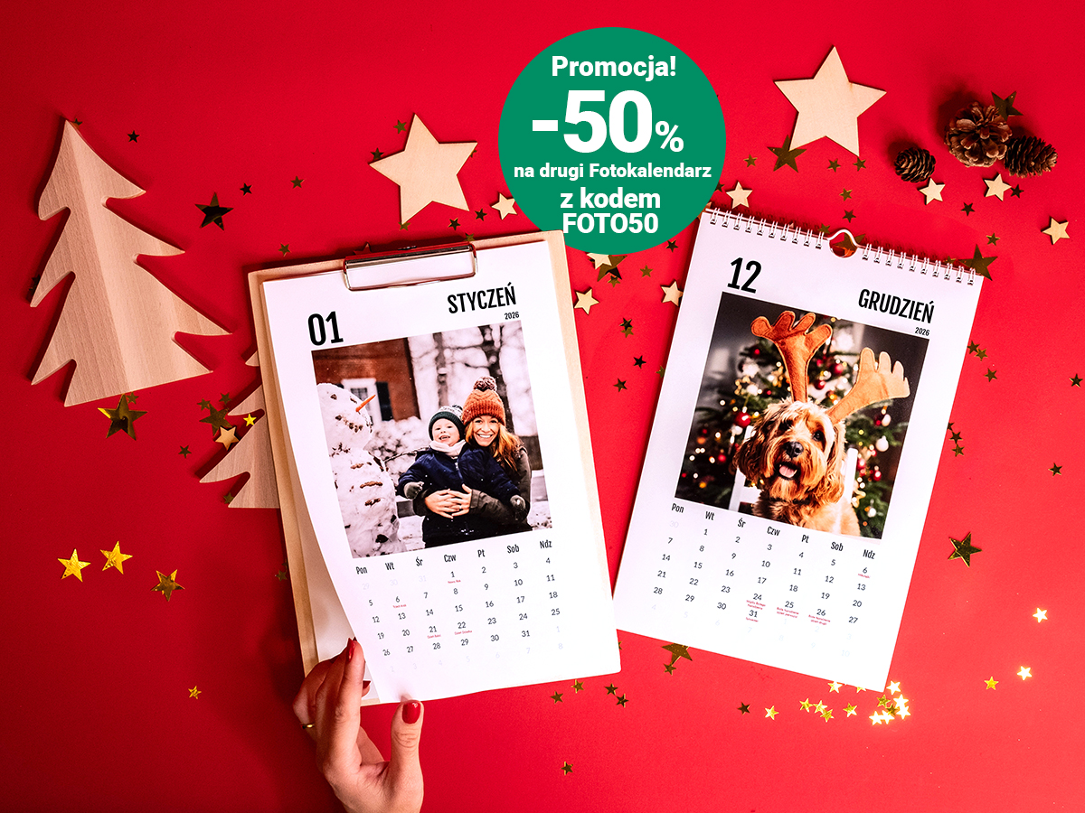 Fotokalendarz to jeden z najczęściej wybieranych fotoprezentów na Święta Bożego Narodzenia. Składa się z 12 kart w formacie 20×30 cm drukowanych na papierze fotograficznym Fujifilm.