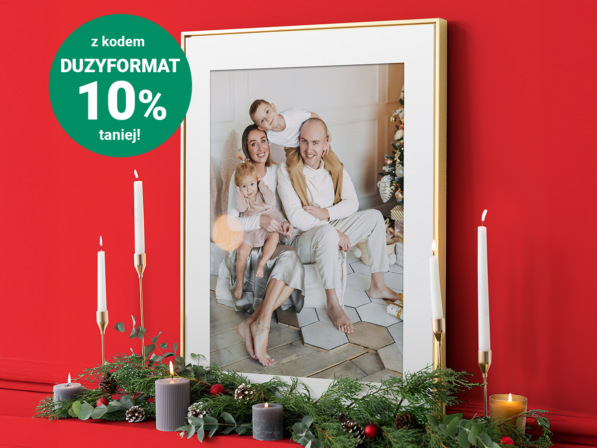 Większy format to większy efekt. Zdjęcie oprawione w ramkę pod choinką wygląda jak prawdziwy prezent premium, nawet jeśli kosztuje niewiele.
